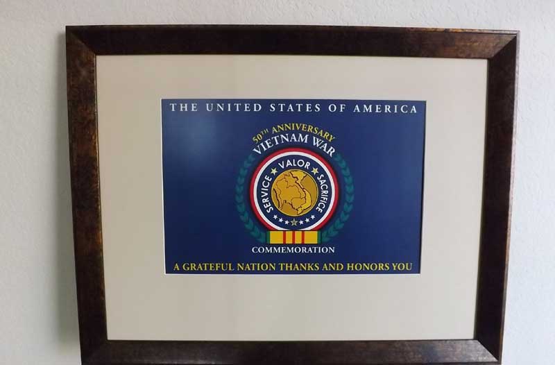 Accepted on behalf of all Viet Nam veterans in North County (award to be signed by Medal of Honor recipients Jay Vargas, John Baca, and Robert Modrzejewski)